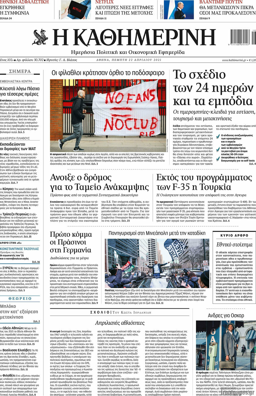 ΕΙΔΗΣΕΙΣ: ΤΑ ΠΡΩΤΟΣΕΛΙΔΑ 22/4/21